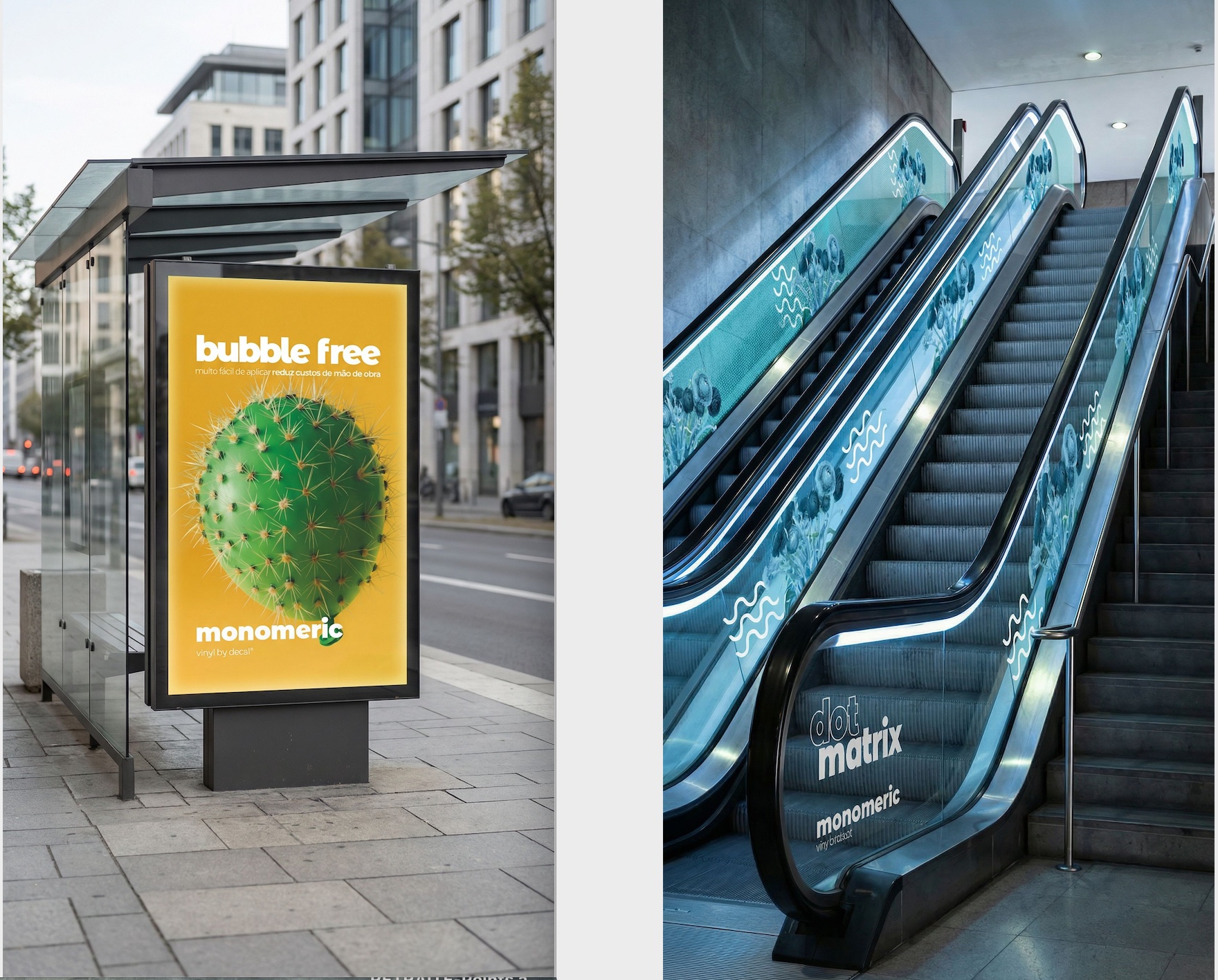 Decal Dot Matrix, quant à lui, est conçu pour les applications promotionnelles de courte durée. Il permet une pose facile sur surfaces planes, lisses et non poreuses. Son adhésif spécial élimine les problèmes courants tels que les plis et les bulles, et permet un repositionnement multiple sans résidus, pour une finition professionnelle. De plus, une fois la campagne terminée, les supports graphiques se retirent proprement sans laisser de résidus ni endommager les surfaces sur lesquelles ils sont appliqués. Il est disponible en version transparente brillante et blanche mate. Ce produit est également doté d'un double support en polyéthylène (PE) qui protège le vinyle de l'humidité. Sa durabilité jusqu'à six mois en fait la solution idéale pour les campagnes promotionnelles et autres installations où la rapidité, la flexibilité et la facilité de retrait sont essentielles.