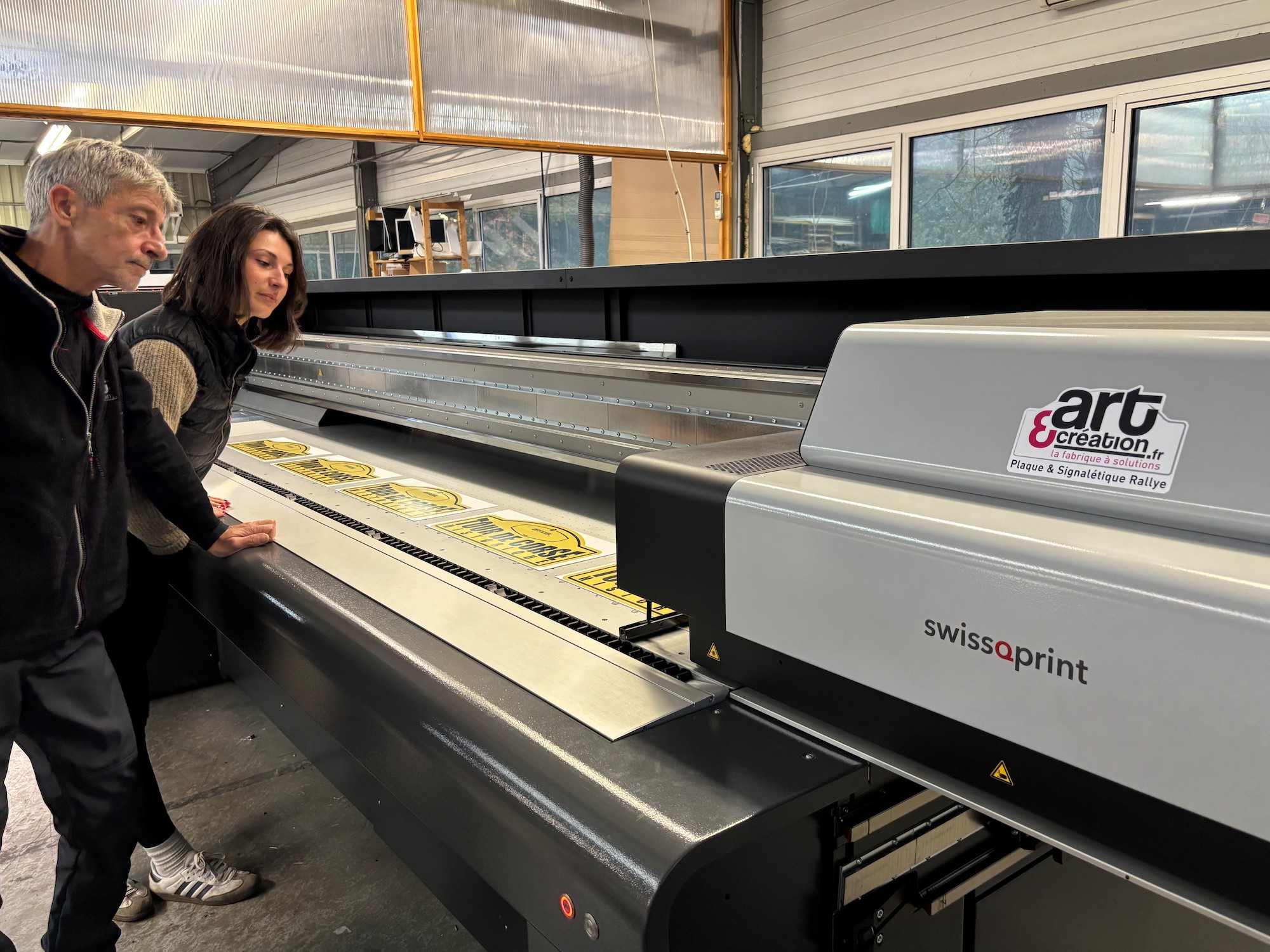 Créée en 1980 comme entreprise de sérigraphie, Art & Création réalise aujourd’hui près des deux tiers de son activité dans le secteur du sport automobile, pour une clientèle d’organisateurs d’événements sportifs : « Nous produisons des éléments de signalétique en Aquilux (polypropylène alvéolaire) ou en divers plastiques comme le polystyrène, le PVC ou le PMMA, explique Sébastien Currat, directeur d’Art & Création. Nous imprimons, vernissons et découpons notamment les plaques de rallye. Nous réalisons également des adhésifs pour véhicules. »